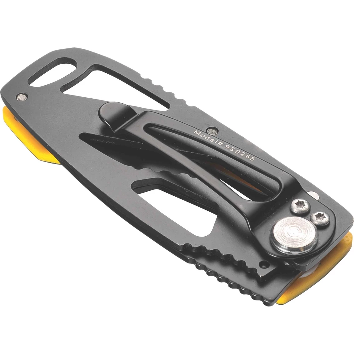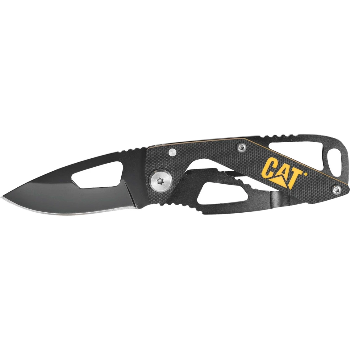 Don’t let the slim profile fool you — the CAT Folding Skeleton Knife punches well above its weight. It’s a light, powerful low profile workhorse. The aluminum and G10 cut-out handles offer tenacious grip while the 2.125 in. drop-point 3Cr13MoV stainless steel blade takes and holds an edge nicely. The blade features a black finish to eliminate glare and resist corrosion. A thumb hole cut-out makes opening the blade a quick one-handed operation, while the integrated belt clip adds to the versatility. Model: 980265.