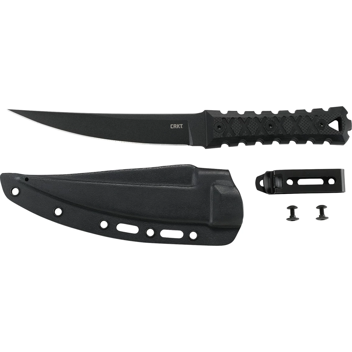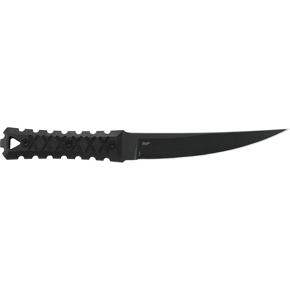 And whatโs in its name? The first two initials stand for โhira-zukuriโ, while the numeral “6” refers to the mighty 6.5-in. blade. But its size isnโt the only thing to fear — constructed of tough D2 stainless steel, slashing and puncturing comes second nature to the HZ6. Even the knife’s handle pulls from Japanese influence, the handle’s carved xโs representing the traditional wrapping of a sword. But itโs not only for aesthetic purposes — designed for delivering a tremendous grip for cold, wet, gloves or gloveless hands; there’s added durability with each strike and blow. Paired with a well-fitted sheath, utilize the holsterโs clip to keep it extra close on your belt, or slip a lanyard through the opening at the base of the handle.