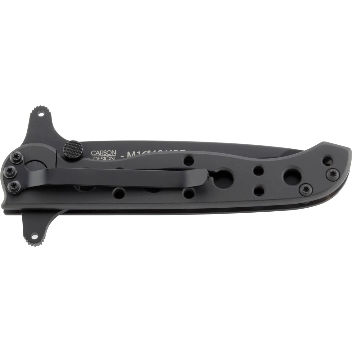 Famous custom knife maker Kit Carson of Vine Grove, Kentucky designed and shaped these handles in the same confident grip M16 knife style, but these are crafted out of a tough stainless steel. The handles are finished in a classic black oxide, corrosion resistant finish. The M16-10KSF is designed for hard use as an everyday carry knife.