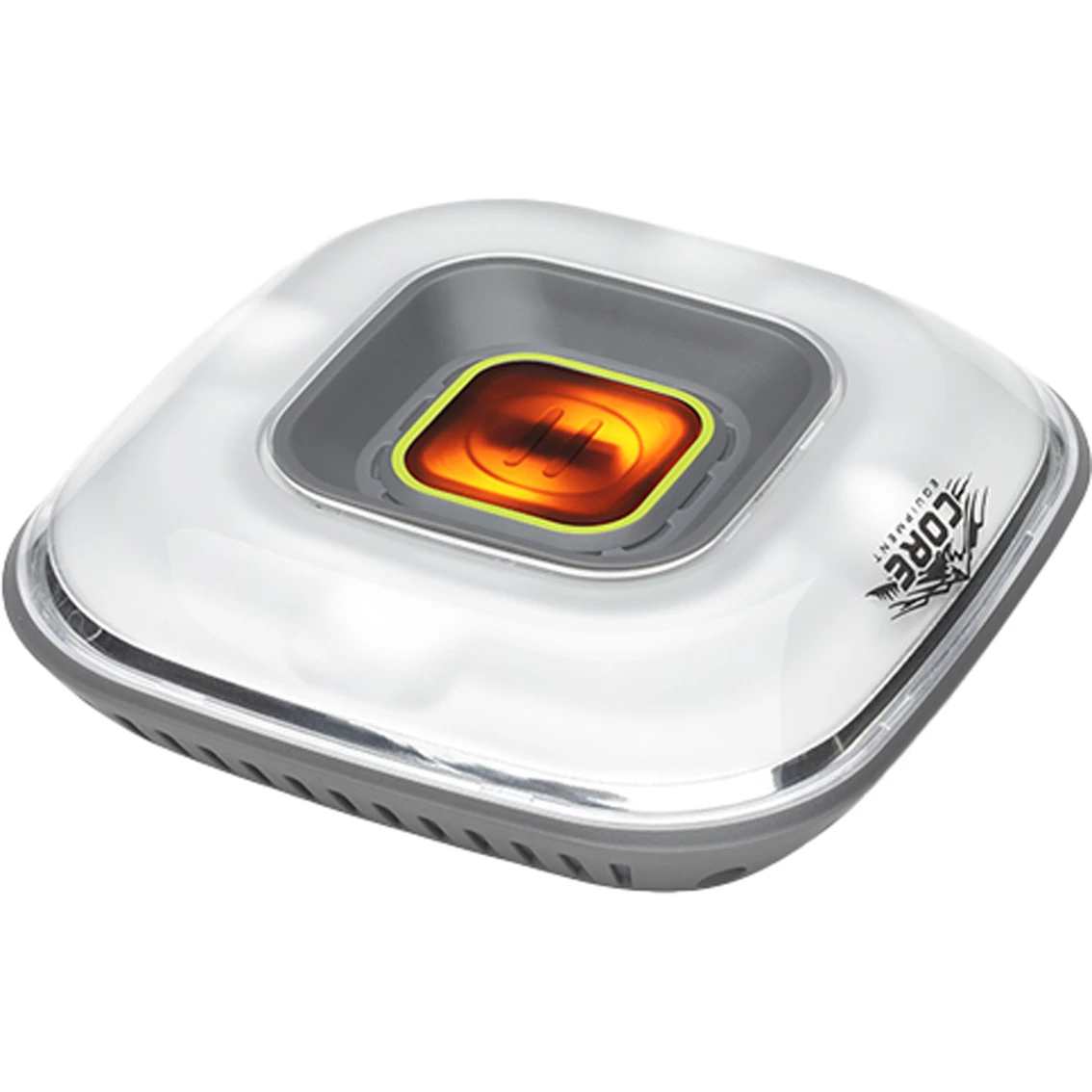 Take back precious headspace. Unlike traditional lanterns, the Core Equipment tent light has a low profile design and compact hook that makes the most of your space. Overhead lighting with downward facing LEDs make the tent light optimal for reading, playing cards and getting organized after the sun goes down. When your day is done, use the easy-on-your-eyes amber nightlight to put off a soft glow you can sleep under night after night. Model: 40028.