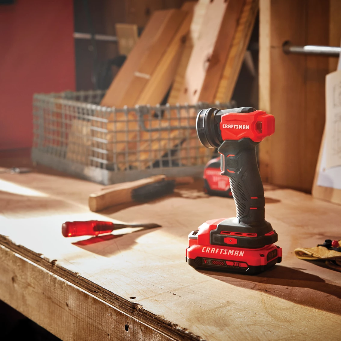 Illuminate your work space with this Craftsman V20 20V Max LED Work Light. Three bright LEDs produce 140 lumens to shed light on dark work areas. A pivoting head allows you to direct the beam in various directions to efficiently illuminate you work area. A compact lightweight design makes this an essential addition to your toolbox.