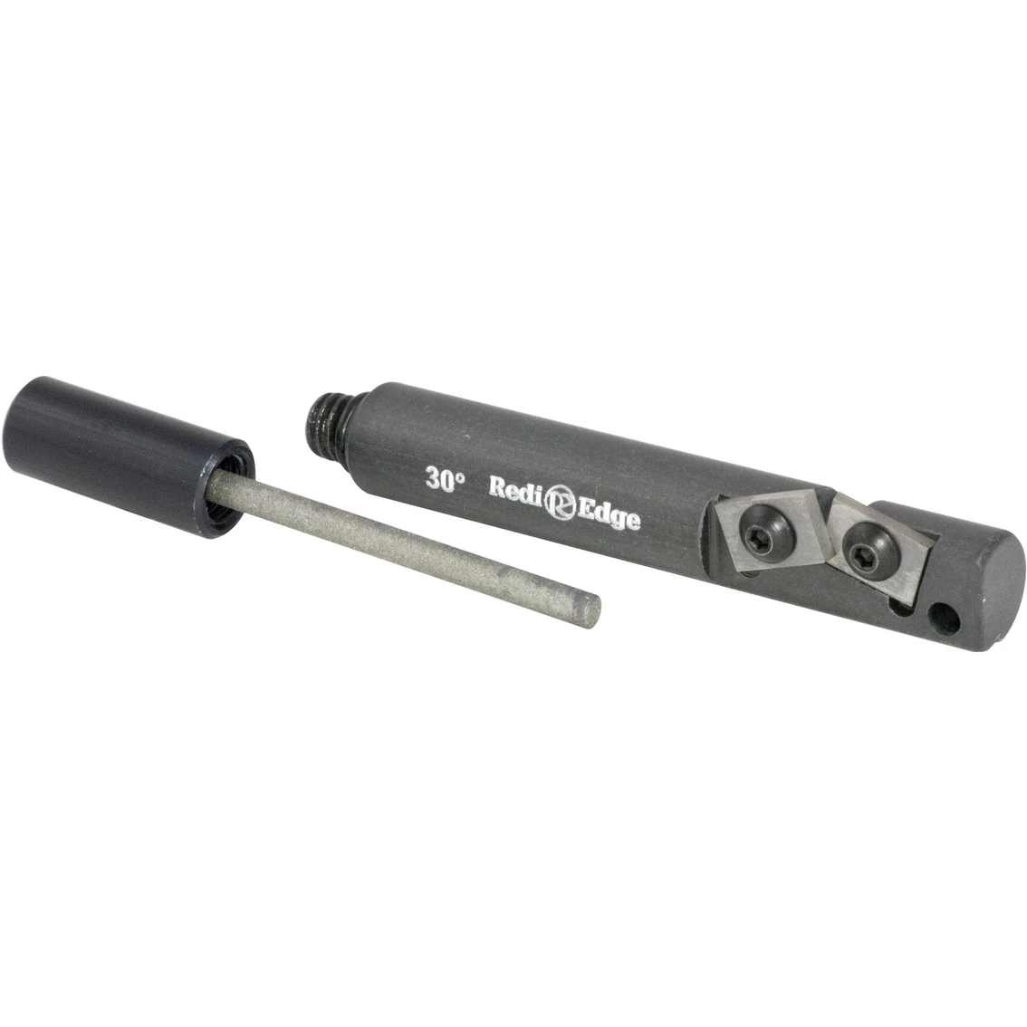 The Redi-Edge Mini-Multi Sharpener has a convenient honing surface and a V-groove for sharpening fish hooks and needle points located on the bottom. It is produced from military-grade aluminum for extreme durability, long life and light weight. The Duromite sharpening elements are harder than any knife blade; and factory pre-set to sharpen filet and boning knife blades at a 30-degree inclusive angle to maintain a 15-degree double cutting edge. Model: REOMINI-30.