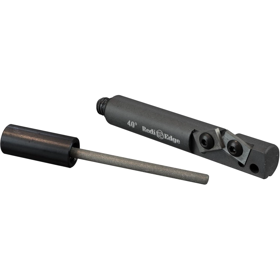 The Redi-Edge Mini-Multi Sharpener from Klawhorn is produced from military-grade aluminum for extreme durability, long life and light weight. The Duromite sharpening elements are harder than any knife blade; and factory pre-set to sharpen most knife blades at a 40 degree inclusive angle to maintain a 20 degree double cutting edge. Model: REOMINI-40.