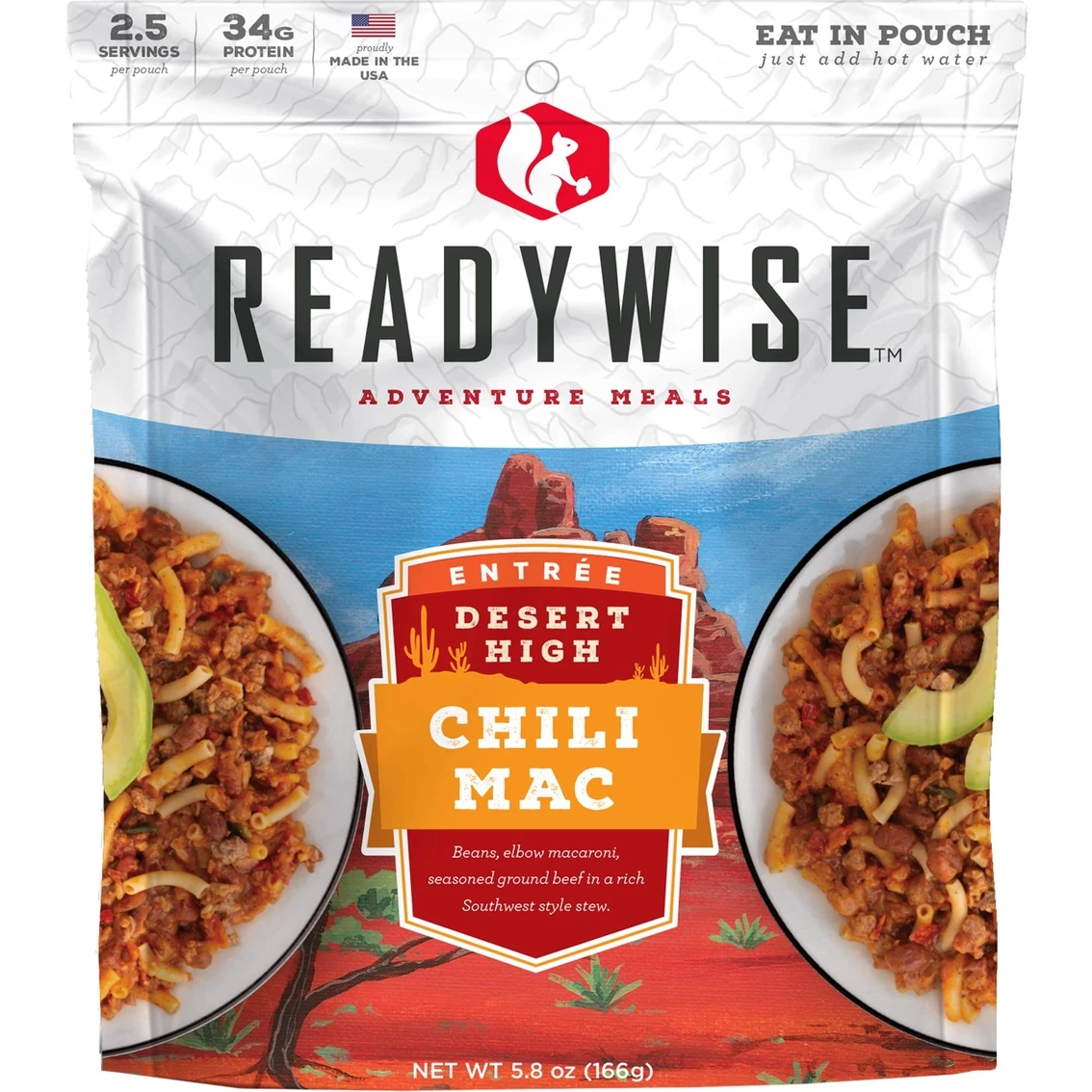 Each pouch of ReadyWise Desert High Chili Mac with Beef contains 2.5 servings and is resealable. These pouches are lightweight making them easily portable on any outdoor adventure. Just add water and you can eat directly from the pouch.