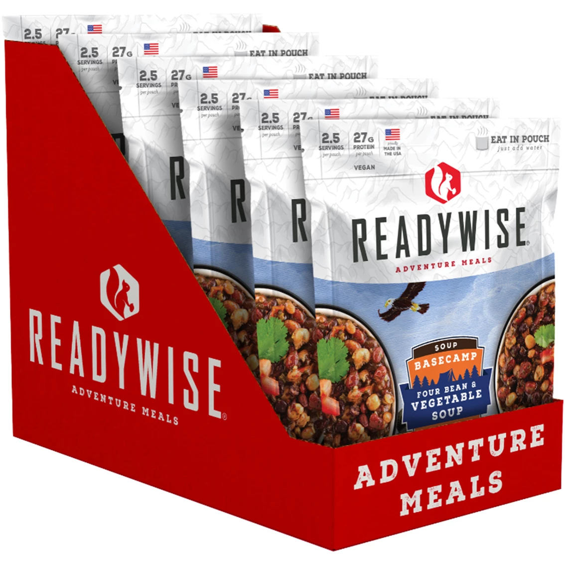 Each pouch of the ReadyWise Basecamp Four Bean and Vegetable Soup contains 2.5 servings and is resealable. These pouches are lightweight, making them easily portable on any outdoor adventure. Just add water and you can eat directly from the pouch.