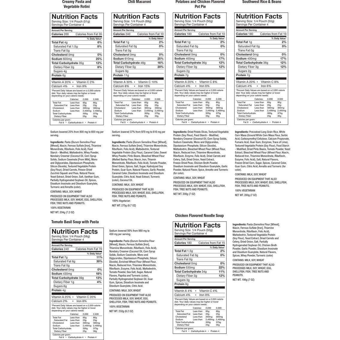 Introducing ReadyWise’s new formulation with lower sodium and trans fat. This assortment contains 2 Servings per day (entrees only) for 1 adult for 2 months or 4 adults for 2 weeks.