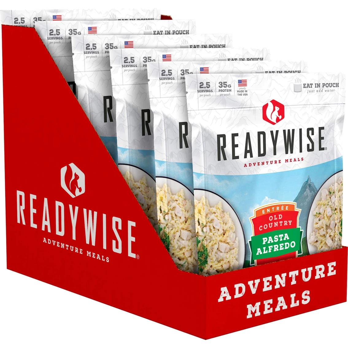 This ReadyWise Emergency Food Pasta Alfredo with Chicken Outdoor Camping Meal 6 pk. contains 6, 2-serving pouches of enriched tagliatelle noodles with chicken in a creamy sauce with Parmesan cheese and spices. When you need an outdoor meal, eat it in a pouch.