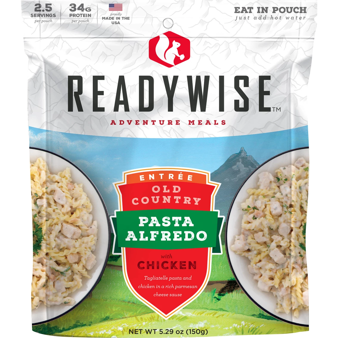 Each pouch of ReadyWise Old Country Pasta Alfredo with Chicken contains 5.29-oz. servings and is resealable. These pouches are lightweight making them easily portable on any outdoor adventure. Just add water and you can eat directly from the pouch. ReadyWise is Real Food All the Time… Also, great for hunting, camping and hiking.