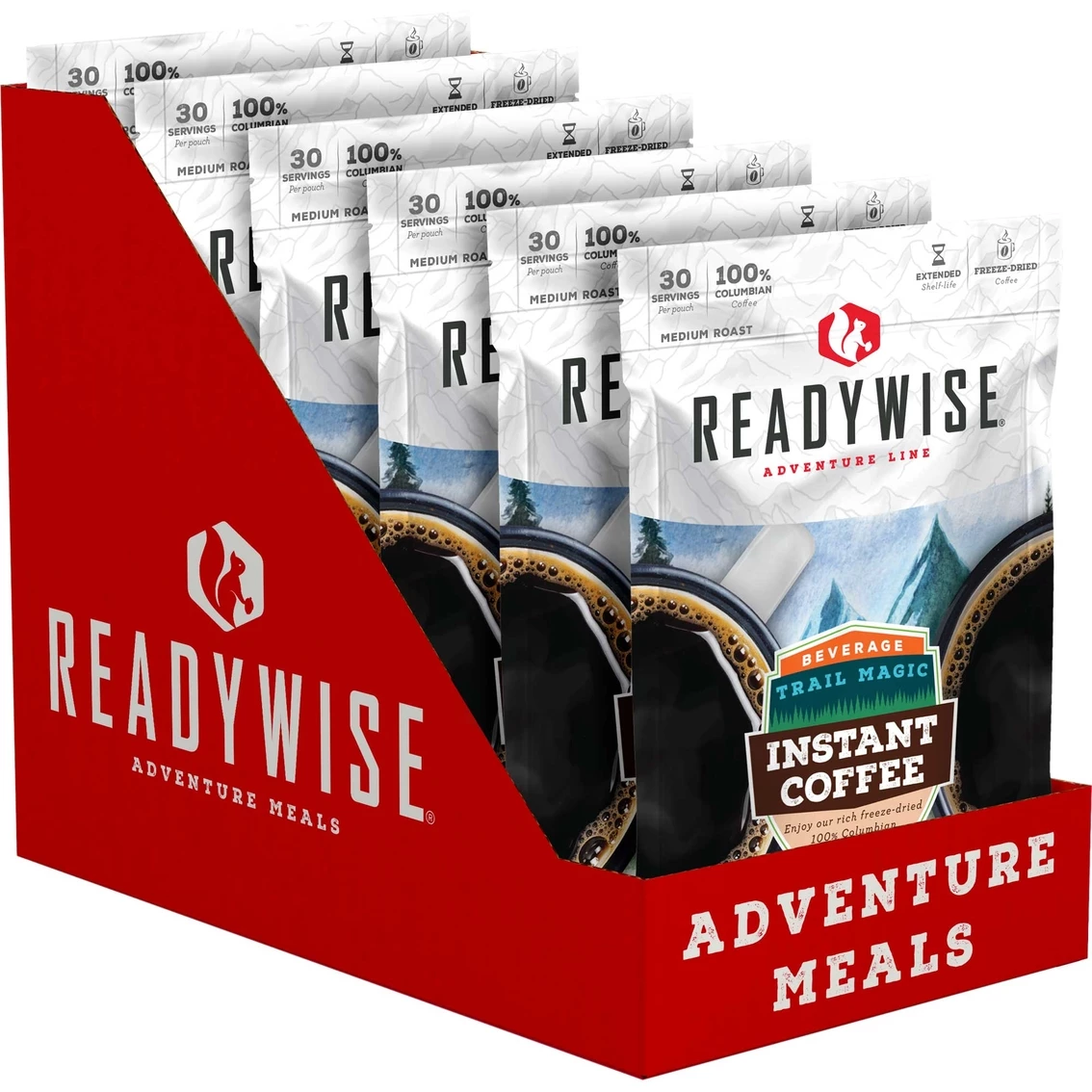 Each pouch of ReadyWise Trail Magic Instant Coffee contains 30 servings of rich freeze-dried 100% Columbian coffee, and is resealable. These pouches are lightweight making them easily portable on any outdoor adventure.
