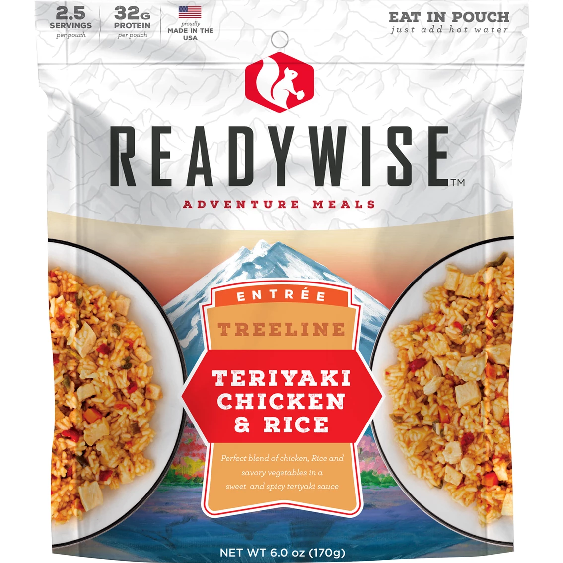 Each pouch of ReadyWise Treeline Teriyaki Chicken & Rice contains 2.5 servings and is resealable. These pouches are lightweight making them easily portable on any outdoor adventure. Just add water and you can eat directly from the pouch.
