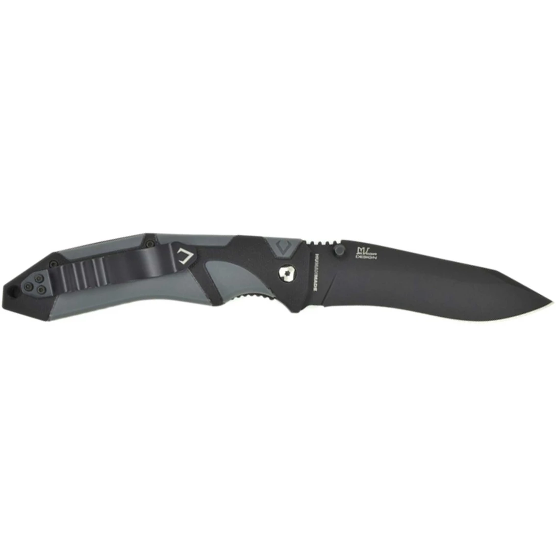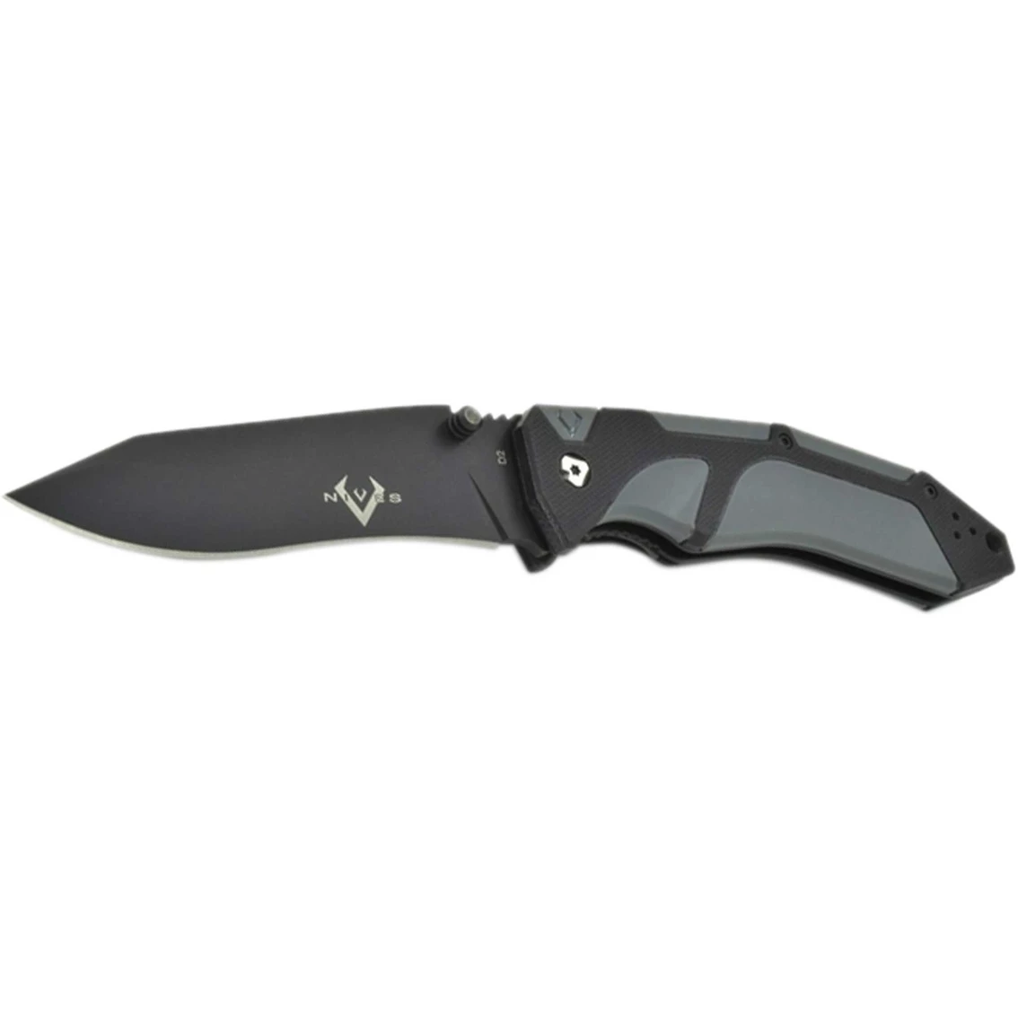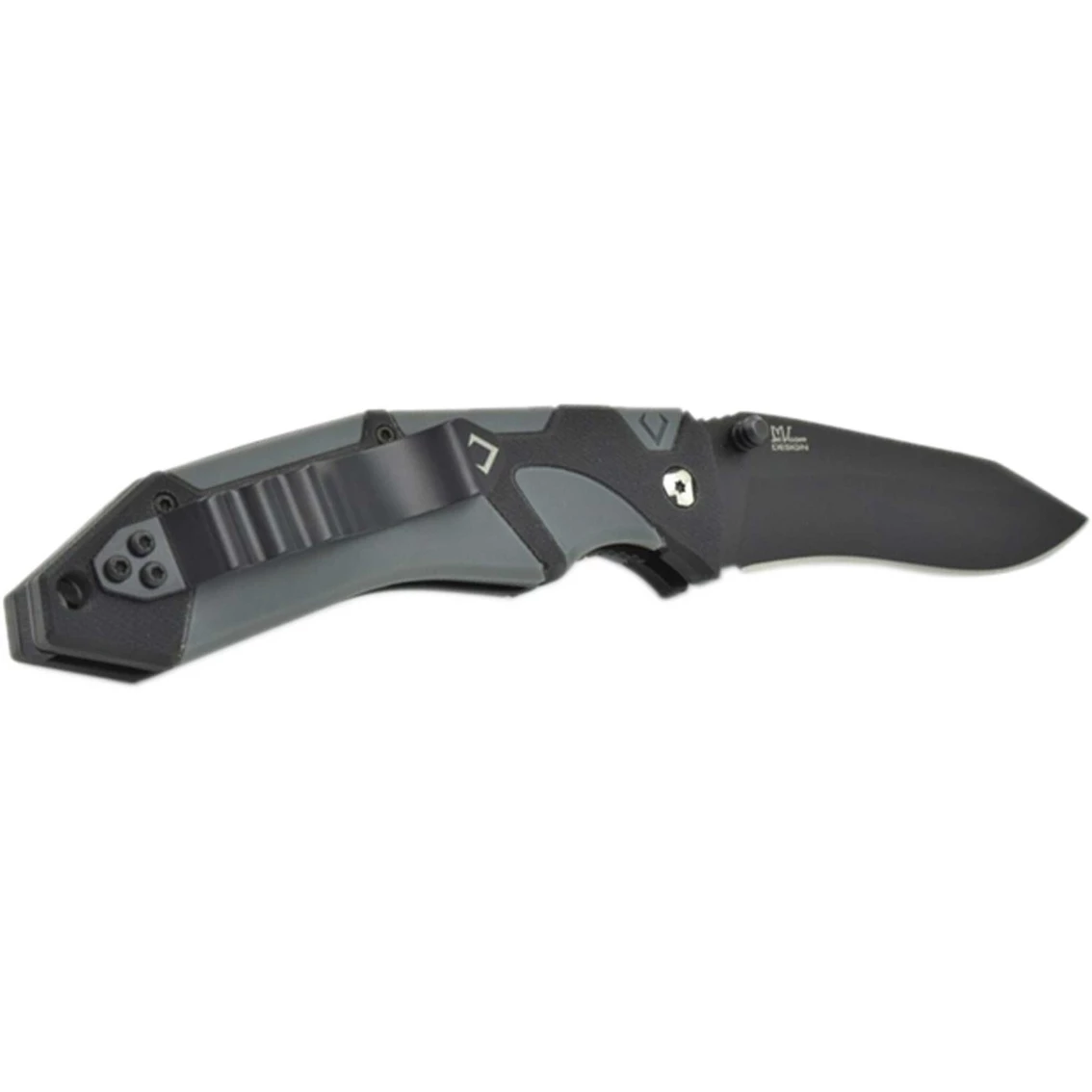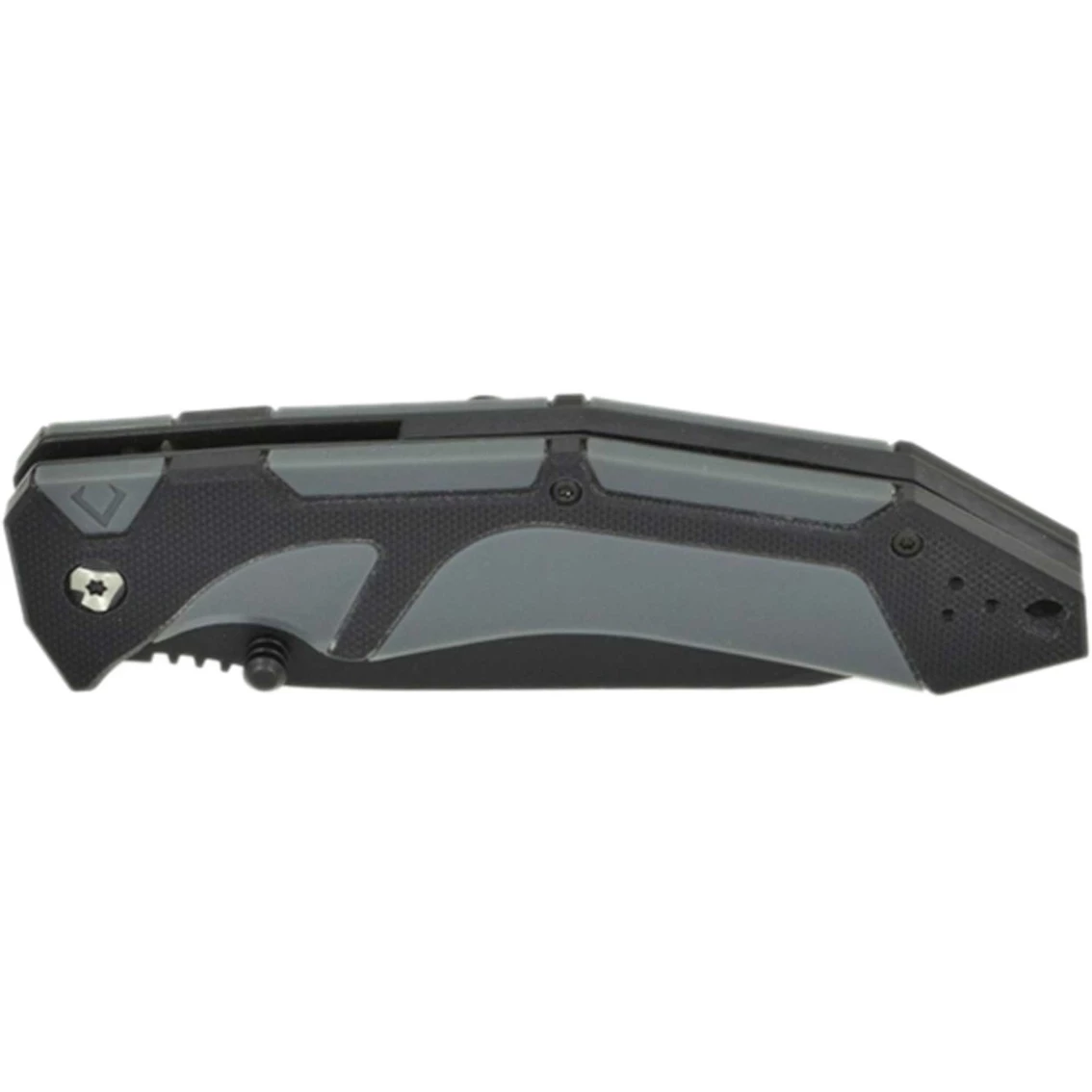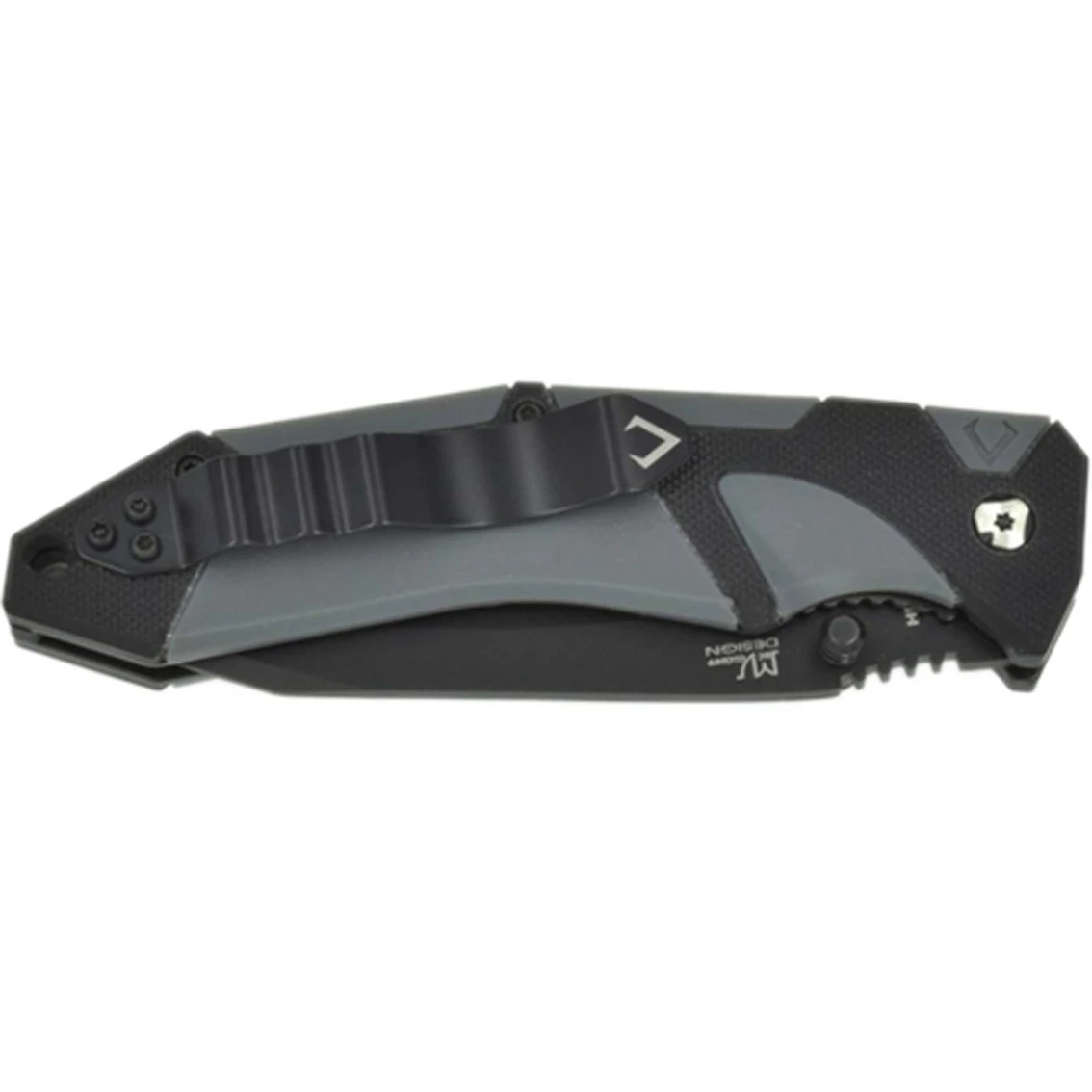 A 8.375in assisted folding knife with a 3.5 in blade made of an extremely high wear-resisting steel (D2). The handle is made of G-10 steel, grey rubber, and comes with a pocket clip. Weighing only 4.83oz, this knife has a thumb stud and is perfect for everyday carry, it also can be used right or left handed.