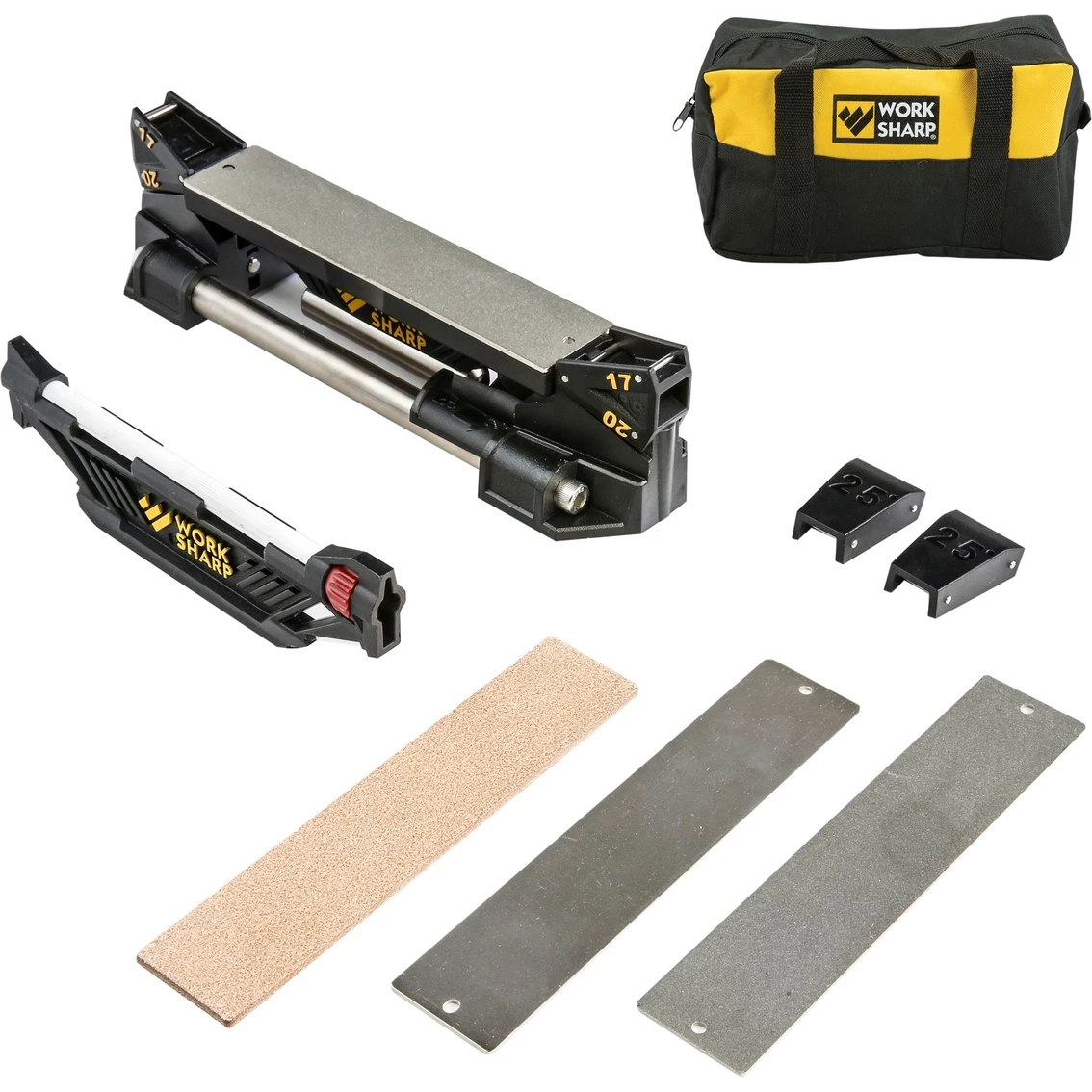 The Work Sharp Guided Sharpening System is a complete sharpening solution for every knife you own. It features the innovative Pivot-Response System which allows the abrasive to follow the curve of the blade — making manual sharpening faster, easier and more precise than ever. You will love this kit. Model: WSGSS-MIL.