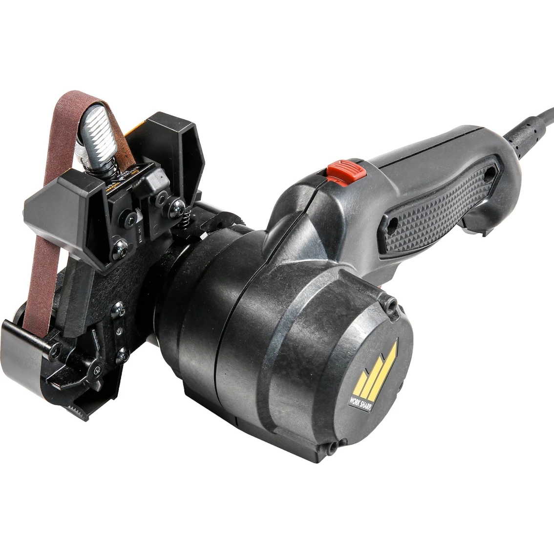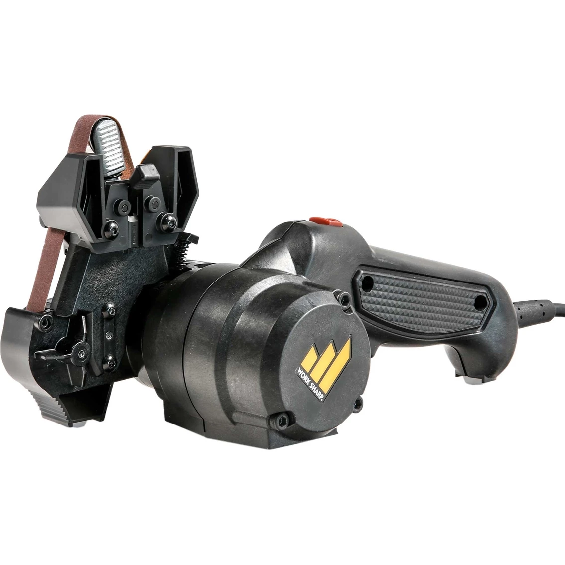 The Mk.2 Knife & Tool Sharpener is an improvement upon the original Work Sharp Knife & Tool Sharpener; which was the first knife sharpener designed to sharpen every knife you own. Building on that success the new Mk.2 provides even more sharpening benefit for the avid knife user. Using 1/2” x 12” flexible abrasive belts in coarse, medium and fine grits (P80, P220, 6000) the sharpener is able to sharpen not just straight bladed knives, but also curved knives, tanto blades, filet knives, serrated knives, gut hooks and virtually any other shape of knife blade. The Mk.2 Knife & Tool Sharpener provides an improved precision sharpening guides to ensure that you get the proper angle every time. Quickly toggle between the 25 degree angle for hunting and outdoor knives and the 20 degree angle for thinner blades and kitchen knives. New Sharpening Guide also provides an Edge Guide to support the blade during the entire process making it more precise and repeatable. New two speed power delivers a low speed for more control when sharpening a knife, yet still provides all the power you need for heavier sharpening and grinding tasks on tools like lawnmower blades, axes and other common lawn & garden tools.